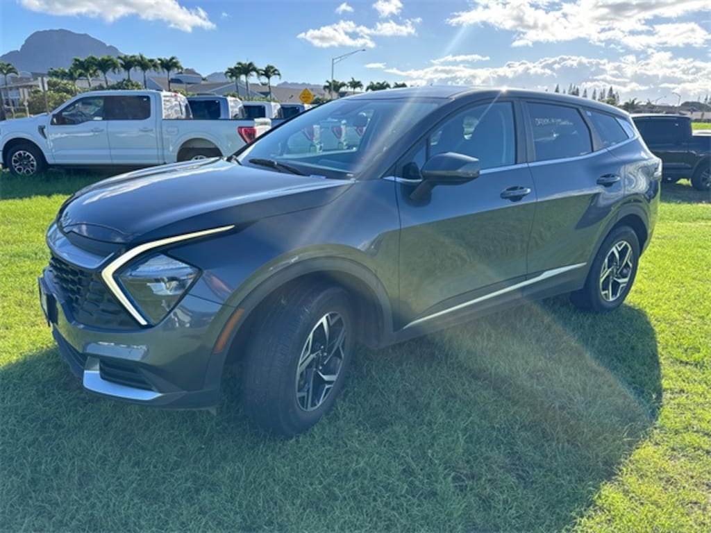 Certified. Gravity Gray 2023 Kia Sportage LX AWD 8-Speed Automatic 17" Alloy Wheels, 4-Wheel Disc Brakes, 6 Speakers, ABS brakes, Air Conditioning, Alloy wheels, AM/FM radio, Auto High-beam Headlights, Axle Ratio: 3.648, Brake assist, Bumpers: body-color, Carpeted Floor Mats, Cloth Seat Trim, Delay-off headlights, Driver door bin, Driver vanity mirror, Dual front impact airbags, Dual front side impact airbags, Electronic Stability Control, Four wheel independent suspension, Front anti-roll bar, Front Bucket Seats, Front Center Armrest, Fully automatic headlights, Heated door mirrors, Heated front seats, Illuminated entry, Low tire pressure warning, Occupant sensing airbag, Outside temperature display, Overhead airbag, Overhead console, Panic alarm, Passenger door bin, Passenger vanity mirror, Power door mirrors, Power steering, Power windows, Radio: AM/FM/HD Audio System, Rear anti-roll bar, Rear seat center armrest, Rear window defroster, Rear window wiper, Remote keyless entry, Security system, Speed control, Speed-sensing steering, Split folding rear seat, Spoiler, Steering wheel mounted audio controls, Tachometer, Telescoping steering wheel, Tilt steering wheel, Traction control, Trip computer, Variably intermittent wipers. I4