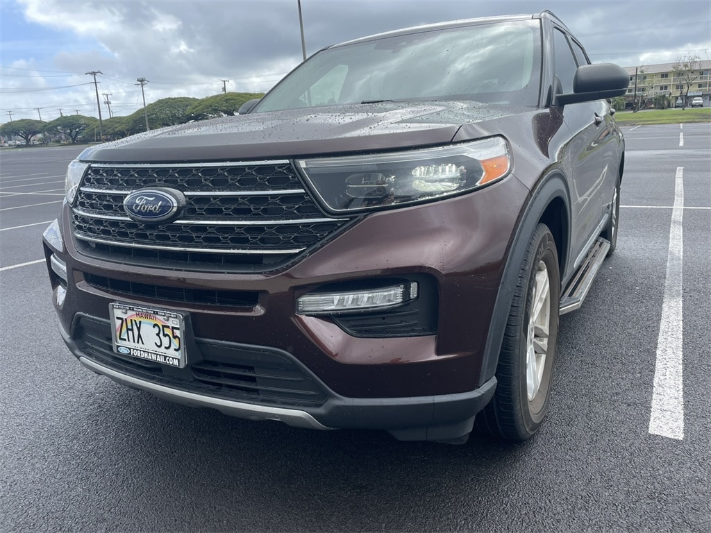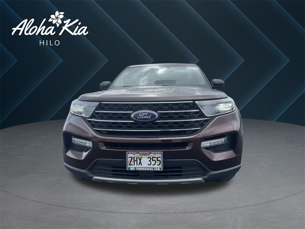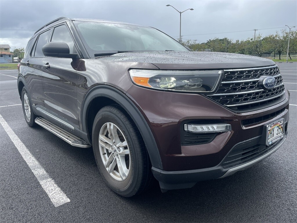 Burgundy 2020 Ford Explorer XLT RWD 10-Speed Automatic 2.3L EcoBoost I-4 2nd Row 35/30/35 Bench w/E-Z Entry & Armrest, 3.58 Non-Limited-Slip Rear Axle Ratio, 3rd row seats: bench, 4-Wheel Disc Brakes, 6 Speakers, ABS brakes, ActiveX Captain's Chairs, Air Conditioning, Alloy wheels, AM/FM radio: SiriusXM, AM/FM Stereo, Auto High-beam Headlights, Automatic temperature control, Brake assist, Bumpers: body-color, Cargo Mat (Dealer Installed), Compass, Delay-off headlights, Driver door bin, Driver vanity mirror, Dual front impact airbags, Dual front side impact airbags, Electronic Stability Control, Emergency communication system: SYNC 3 911 Assist, Equipment Group 202A, Exterior Parking Camera Rear, FordPass Connect, Four wheel independent suspension, Front & Second Row Floor Liners, Front anti-roll bar, Front Bucket Seats, Front Center Armrest, Front dual zone A/C, Front reading lights, Fully automatic headlights, Heated door mirrors, Illuminated entry, Knee airbag, Leather steering wheel, LED Fog Lamps, Low tire pressure warning, Occupant sensing airbag, Outside temperature display, Overhead airbag, Overhead console, Panic alarm, Passenger door bin, Passenger vanity mirror, Power door mirrors, Power driver seat, Power Liftgate, Power passenger seat, Power steering, Power windows, Rear air conditioning, Rear anti-roll bar, Rear reading lights, Rear window defroster, Rear window wiper, Remote keyless entry, Remote Start System, Security system, Speed control, Speed-sensing steering, Speed-Sensitive Wipers, Split folding rear seat, Spoiler, Steering wheel mounted audio controls, SYNC 3 Communications & Entertainment System, SYNC 3/Apple CarPlay/Android Auto, Tachometer, Telescoping steering wheel, Tilt steering wheel, Traction control, Trip computer, Unique Cloth Captain's Chairs, Variably intermittent wipers, Wheels: 18" 5-Spoke Sparkle Silver-Painted Alum.