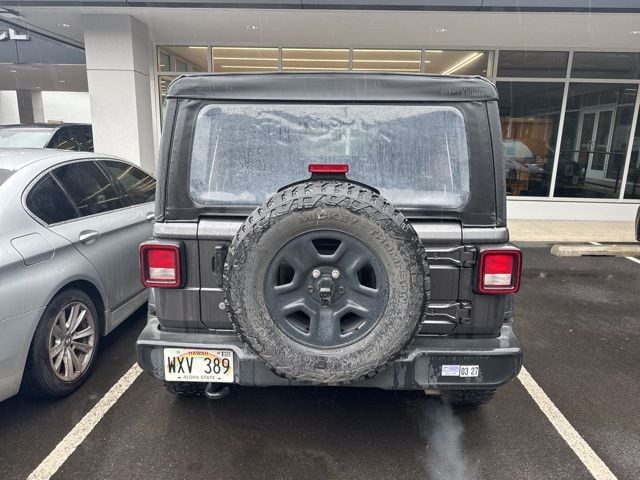 Granite Crystal Metallic Clearcoat 2022 Jeep Wrangler Unlimited Sport 4WD 8-Speed Automatic 2.0L I4 DOHC 110 MPH Vehicle Max Speed Calibration, 3.45 Rear Axle Ratio, 4-Wheel Disc Brakes, 8 Speakers, ABS brakes, Air Conditioning, AM/FM radio, Apple CarPlay/Android Auto, Aux Battery, Brake assist, Cloth Low-Back Bucket Seats, Compass, Delay-off headlights, Driver door bin, Driver vanity mirror, Dual front impact airbags, Dual front side impact airbags, Electronic Stability Control, Emergency communication system: SiriusXM Guardian, Engine Oil Cooler, Front anti-roll bar, Front Bucket Seats, Front Center Armrest w/Storage, Front fog lights, Front reading lights, Integrated roll-over protection, Low tire pressure warning, Manufacturer's Statement of Origin, Non-Lock Fuel Cap w/o Discriminator, Normal Duty Suspension, Occupant sensing airbag, Outside temperature display, ParkView Rear Back-Up Camera, Passenger door bin, Passenger vanity mirror, Power steering, Quick Order Package 22B Sport, Radio data system, Radio: Uconnect 4 w/7" Display, Rear anti-roll bar, Rear reading lights, Speed control, Split folding rear seat, Steering wheel mounted audio controls, Stop-Start Dual Battery System, Tachometer, Telescoping steering wheel, Tilt steering wheel, Traction control, Trip computer, Variably intermittent wipers, Wheels: 17" x 7.5" Black Steel Styled.