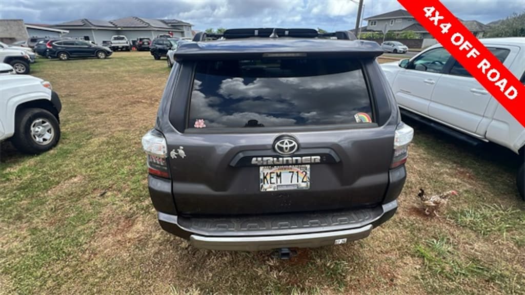 Gray 2021 Toyota 4Runner TRD Off-Road Premium 4WD 5-Speed Automatic with Overdrive 3.727 Axle Ratio, 4-Wheel Disc Brakes, 8 Speakers, ABS brakes, Air Conditioning, Alloy wheels, AM/FM radio: SiriusXM, Anti-whiplash front head restraints, Apple CarPlay/Android Auto, Auto High-beam Headlights, Auto-dimming Rear-View mirror, Black Roof Rails, Body Color Heated Mirrors, Brake assist, Bumpers: body-color, Compass, Driver door bin, Driver vanity mirror, Dual front impact airbags, Dual front side impact airbags, Electronic Stability Control, Emergency communication system: Safety Connect with 1-year trial, Exterior Parking Camera Rear, Front anti-roll bar, Front Bucket Seats, Front Center Armrest, Front fog lights, Front reading lights, Front wheel independent suspension, Garage Door Opener, Garage door transmitter: HomeLink, Heated door mirrors, Heated Front Bucket Seats, Heated front seats, Illuminated entry, Knee airbag, Leather Shift Knob, Low tire pressure warning, Occupant sensing airbag, Outside temperature display, Overhead airbag, Overhead console, Panic alarm, Passenger door bin, Passenger vanity mirror, Power door mirrors, Power driver seat, Power passenger seat, Power steering, Power windows, Radio: Premium Audio w/Dynamic Navigation, Rear anti-roll bar, Rear seat center armrest, Rear window defroster, Rear window wiper, Remote keyless entry, Roof rack: rails only, Security system, Softex Synthetic Leather Seat Trim, Speed control, Speed-sensing steering, Split folding rear seat, Spoiler, Steering wheel mounted audio controls, Tachometer, Telescoping steering wheel, Tilt steering wheel, Traction control, Trip computer, Turn signal indicator mirrors, Variably intermittent wipers, Wheels: 17" x 7.5" 7-Spoke Unique Off-Road Alloy. 4.0L V6 SMPI DOHC